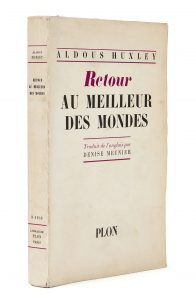 UXLEY (Aldous) — Retour au meilleur des mondes. — Paris, Plon, 1959. — In-12 (18,7 x 11,7 cm), broché. — [3] ff., II p., 182 p., [1] f.