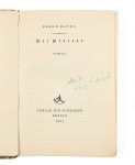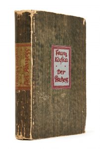 KAFKA (Franz) — Der Prozess. — Berlin, Die Schmiede, 1925. — In-8 (18,9 x 12,9), cartonnage de l'éditeur à la bradel, papier à la colle vert bronze, pièces de titre collées sur le plat supérieur et sur le dos, tête bleue. — [1] f. 411 p.