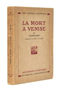 MANN (Thomas) — La Mort à Venise. — Paris, Éditions du Sagittaire, 1925. In-12 (15,6 x 11,6 cm), broché, couverture rempliée. — 207 p., [2] ff.