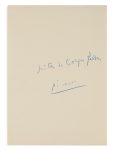 Elle est accompagnée d'un feuillet manuscrit signé de Picasso au crayon bleu.