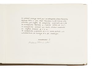 Tirage limité à 88 exemplaires sur papier vélin d'Arches pur chiffon, tous signés par Rouan : le n° 1, pour Félia Léal.