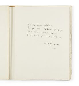 Exemplaire enrichi d'un envoi autographe signé de Maccheroni, au crayon, à R. Geslin " sans qui ce livre n'aurait peut-être jamais vu le jour ", d'un quatrain autographe signé, au crayon, de Pierre Bourgeade et d'un tirage photographique contrecollé supplémentaire.