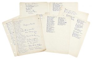 Ensemble de manuscrits de travail pour la chanson le Vieux Léon qui ouvre l'album le Pornographe, gravé en 1958.