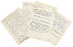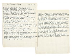 Supplique pour être enterré à la plage de Sète, gravé en 1966. Les documents présentent plusieurs versions, dont une définitive avec tonalité (2 p. sur 2 ff., 2 petites corrections), beaucoup de recherches, des ratures, ainsi que des strophes entourées pour être retenues.