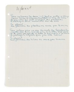 Manuscrit autographe pour la chanson Le Pluriel, figurant sur l'album Supplique pour être enterré à la plage de Sète, gravé en 1966.