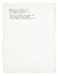 BRASSENS (Georges) — Manuscrit autographe pour la chanson Jean rentre au village. — 1 p. et 2 quatrains sur 2 ff. in-4 collés ensemble.