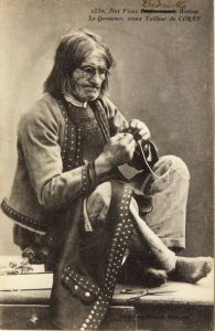 La photographie au recto de la carte postale figure : “Nos vieux professionnels bretons : Le Quemener, vieux tailleur de