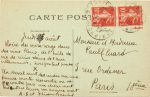 Carte postale autographe signée, oblitérée, adresse : “Monsieur et Madame Paul Éluard 3 rue Ordener Paris 18ème.”