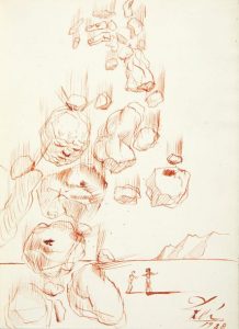 Celui-ci, daté de 1948, représente une chute de roches, figurant son approche de la fragmentation de l'atome, dans un paysage où apparaissent deux personnages : superbe composition à l'encre bistre.