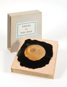 Dadaist predilection for shock is perfectly accomplished in his Readymade foam-rubber cover accompanied by a label stating, please touch.”- Schwarz, The Complete Works of Marcel