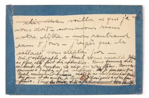 La suite est de la main de Paul Éluard : “Oui, l'orthographe de Nusch est une merveille. Mais en plus, elle fait très attention. Nous sommes très contents de rentrer. La neige ici est un fléau. Nous en sommes à 3 mètres et çà continue. Je pensais que Nusch reviendrait brunie, mais je ne vois plus par quoi. Des jours et des nuits, je rêve d' horizons à n'en pas finir. Tous les deux, très affectueusement tien. Paul.”