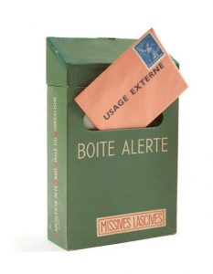 EXPOSITION INTERNATIONALE DU SURRÉALISME, 1959- 1960. Boîte alerte, missives lascives. Paris, Galerie Daniel Cordier, 1959.