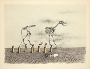 Cache-toi guerre ! Cycle de neuf dessins [de Toyen] 1944. Poème de J. Heisler. Sans lieu [Paris, aux dépens de Toyen], mai 1947.