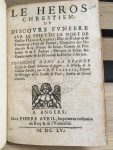 & de S. Aulaye, Marquis de Belin, &c. Gouverneur de la province & duché d'Anjou. Prononcé dans la grande église de Sainct Maurice d'Angers, le Mardy de la Semaine Saincte A Angers, chez Pierre Avril, 1655. In-4, 23 p., demi-chagrin rouge XIXe s., dos à 4 nerfs, titre doré (dos un peu bruni, plats insolés, rousseurs).