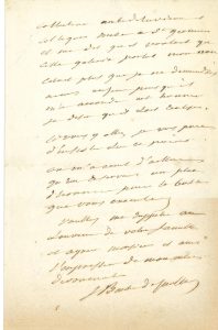 Saint-Germain-en-Laye. Une commission composée de MM. de Nieuwerkerke, Viollet-le-Duc, de Longpérier, de Saulcy, Lartet etc. doit se réunir au château de Saint-Germain le 15 mai, et M. de Nieuwerkerke l’invite à s’y rendre : « il s’agit de l’organisation des salles et de la distribution des collections selon leur nature et leur époque »… Il répond cependant qu’invalide en ce moment, il ne peut s’y rendre et propose de s’y faire représenter par son ami Gédéon de Forceville, qui connaît bien sa collection, et Saint-Germain. « Lorsque l’empereur me témoigna le désir de voir ma collection antédiluvienne et celtique mise à St Germain il me dit qu’il voulait que cette galerie portât mon nom. C’était plus que je ne demandais mais aussi puisqu’il m’a accordé cet honneur je désire qu’il soit réalisé. Si vous y allez je vous prie d’insister sur ce point. On m’a écrit d’ailleurs qu’on réservait une place d’honneur pour le buste que vous exécutez »…