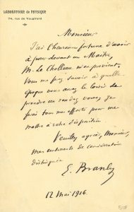 Édouard BRANLY (1844-1940) physicien. L.A.S., Paris 12 mai 1916, [à Ignacio Zuloaga ?] ; 1 page in-8, en-tête Laboratoire de Physique.