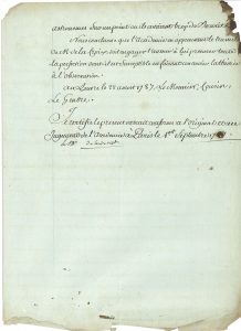 On joint une L.A.S. de sa femme à Charles Dupin, 23 juillet 1821, relative à « son introduction »….Extrait certifié conforme d’un rapport présenté à l’Académie des Sciences le 22 août 1787, par MM. Le Monnier, de Lalande, Cousin et Le Gendre, pour rendre compte d’un « Mémoire sur la Théorie du Soleil, avec de nouvelles tables de cet astre, par M. de La Croix. […] M. de La Croix, en s’occupant de la théorie des perturbations de la terre, s’est apperçu que l’equation lunaire donnée par Clairaut et adoptée par M. de La Caille, etait defectueux, et que l’equation de Venus avait besoin de correction à cause de l’incertitude sur la masse de cette planette. […] M. l’abbé de Lambre s’est dejà livré à des recherches semblables […] et plusieurs de ses resultats sont d’accord avec ceux de M. de La Croix. Mais quelque soit le merite du travail de M. de Lambre, la date de M. de La Croix est anterieure, et c’est lui qui le premier a reveillé l’attention des astronomes sur un point ou ils avaient trop de sécurité. Nous concluons que l’Académie en approuvant le travail de M. de La Croix, doit engager l’auteur à lui procurer toute la perfection dont il est susceptible en faisant concourir la théorie à l’observation »…
