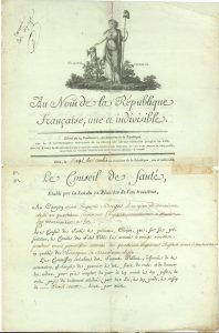 On joint une P.S. par 7 membres de la Commission de Santé (Vergez, Bécu, Bayen, Hégo, Chabrol, etc.) et 7 membres du Comité de Salut public (Richard, Fourcroy, Cambacérès, Merlin de Douai, J.F.B. Delmas, L.-B. Guyton-Morveau et Pelet de la Lozère), 6-9 frimaire III (26-29 novembre 1794), nomination de Germain Fontaine comme officier de santé chirurgien de 3e classe à l’Armée du Nord.
