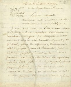 et 3 pages et demie grand in-fol..Anvers 8 mars 1793, aux députés de la Convention, et ses commissaires en Belgique. Ayant reçu une lettre de ses collègues de Bruxelles, requérant une mesure importante et urgente, il s’est aussitôt transporté avec ses collègues chez le général Marassé [commandant en chef à Anvers, il passera à l’ennemi avec Dumouriez] : « il parut plus qu’étonné, forma des objections, demanda des délais, proposa d’écrire à Dumourier ; je lui déclarai, que je le sommois au nom de mes pouvoirs d’exécuter sans délai la réquisition qui lui était faite ; il s’apitoyait, il pleurait presque ; je finis par lui dire qu’il serait responsable de tout ce qui adviendrait, et de la moindre opposition. Cela parut le déterminer. […] Les démarches ont été infructueuses ; dois-je en accuser le hazard ou les liaisons et la faiblesse de Marassé ? Ou bien votre arrêté et vos mesures avaient-ils déjà transpiré ? »… Il réclame le pouvoir de casser l’administration et la municipalité provisoires, dont la perfidie risque de provoquer une insurrection populaire… Paris 24 brumaire II (14 novembre 1793). Certificat témoignant d’avoir entendu le citoyen Gail professer « les principes de la république et de la révolution »… [1794 ou 1795], aux représentants du Peuple composant le Comité de Surêté générale. Dénoncé à la Section du Muséum, il se défend contre les accusations d’avoir été « agent du terrorisme dans la Belgique, et d’y avoir contribué, avec Chapy, par la mauvaise conduite, à nos revers », et d’avoir été « complice de la conjuration de Pache », dont il aurait été secrétaire : il invoque la surveillance, en Belgique, des représentants Treilhard, Camus, Merlin de Douai et Gossuin, accuse les Mémoires de Dumouriez d’être la source de la calomnie, et indique les limites de son emploi à la mairie : deux mois de service sans rapport avec Pache… Aussi, « je vous demande representans du peuple de me rendre une liberté que je n’ai pas merité de perdre »…