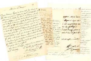 (Surrey 1852), etc. ; plus l’album L’Autographe (impr. Vallée, 1864)..Charles-Nicolas d’Anthouard, François-Antoine Boissy-d’Anglas (à Lacépède, 1820), Aristide Briand, Vincenzo Camuccini (1817), Henri de Carrion-Nisas (Béziers 1819), Auguste de Flahaut (au général Pajol), Charles de Gaulle (l.s. à Philippe Grandpierre, 1946, défauts), Ferdinand de Lesseps (1868), Louis-Philippe (1842), Joseph Durant baron de Mareuil (1821), Anne-Adrien-Pierre de Montmorency-Laval (1822), Étienne-Denis Pasquier (2, une au duc de Parme), Philippe Pétain (1915), Jean-Pierre-Antoine Rey, général Roy (1915), Antoinette de Launoy Colbert marquise de Seignelay (1826), Emmanuel Félix de Wimpffen (au sujet de la bataille de Sedan et du général Faure).