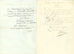intendant général et intendant général de l’armée et des pays conquis, Berlin 1806), Joseph Fouché (ministre de l’Intérieur, contresignée par le vice-Grand-Électeur Charles-Maurice de Talleyrand, 1809), Jean-Pierre Bachasson comte de Montalivet (ministre de l’Intérieur, contresignée par Talleyrand, 1813), Jean-Étienne-Marie Portalis (ministre des Cultes, 1807), Maurice Seguier (envoi de vers inspirés par « le heros de la France », Montpellier 1801, et minute de réponse de son cousin).