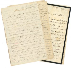 (Aude), substitut du procureur à Alger, volontaire au 108e régiment de ligne. Sa femme le suit en métropole, demeurant à Chambéry avec la femme de M. de Cléry, avocat général à Alger et volontaire dans le même régiment. Ses lettres expriment ses craintes, sa tendresse, sa foi, son émotion de le savoir blessé, sa fierté de le savoir décoré… Le général Louis Maurandy écrit amicalement à Léopold, évoquant sa prise de commandement de la 2e division du 19e corps de la 2e armée, et le plaisir qu’il se promet « en vous priant d’accepter une des vieilles croix que j’ai portées en Crimée et ailleurs » (21 décembre 1870)… Il est question de la bataille de Champigny, du général Trochu, de l’armistice et du Parlement à Bordeaux, mais aussi de mouvements dans la magistrature, de l’espoir d’une promotion et de leur retour en Algérie…