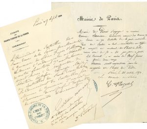 souliers pour le 90e bataillon de la Garde Nationale), Adolphe Thiers (Tours 25 octobre 1870, annonçant un armistice militaire prochain et sur ses démarches), Aristide de Gondrecourt (prisonnier de guerre, Cologne 5 novembre 1870, parlant des pertes de la vaillante armée de Metz). Carte d’identité de garde national, certificat d’exemption de la Garde nationale, laissez-passer.