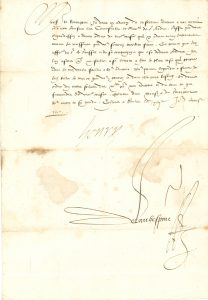 bataille de Saint-Quentin, qui vit l’écrasante victoire des troupes espagnoles [l’armée française perdit 6 000 hommes, et autant de prisonniers, dont le connétable Anne de Montmorency et le maréchal de Saint-André ; Henri II donne ici des ordres pour que les troupes se replient sur Ham afin de barrer la route de Paris aux Espagnols].