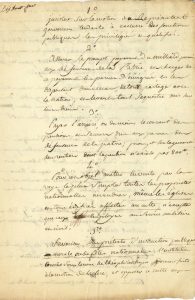 l’automne 1797). « 1° Insister sur la motion du Représentant Gaivernon [Gay-Vernon] tendante à exclurre des fonctions publiques les privilégiés et qualifiés. 2° Assurer le prompt payement du milliard promis aux défenseurs de la Patrie, et charger de ce payement les parens d’émigrés […]. 3° Payer l’arriéré, ou du moins le courant des pensions et secours dus aux parens des défenseurs de la patrie […]. 5° Favoriser, sous prétexte d’instruction publique morale ou de fêtes nationnalles, l’institution connüe sous le nom de théophilantropie, donner suite à la motion de Leclerc, et opposer ce culte aux ravages du fanatisme Romain. Lier adroitement les actes civils de naissances, mariages et décès avec le culte des théophilantropes ; donner quelques fonds secrets pour établir cette religion universelle »… D’autres articles concernent un emprunt forcé, le durcissement des procédures de radiation de la liste d’émigrés, la réorganisation de la gendarmerie « partout détestable », le remplacement des tribunaux par le Directoire… « 10° Traduire devant les commissions militaires […] les égorgeurs connus sous le nom de compagnons de Jésus et du soleil. 11° Déporter les royalistes convaincus & les parens d’émigrés […]. 12° Réduire le nombre des Représentans provisoirement jusqu’en germinal et deporter les autres sans menagement »…