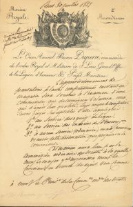 Duperré (à son en-tête et aux armes royales), Benoît-Georges de Najac (ordonnateur de la Marine à Brest, belle vignette Liberté des mers), Alexis Pothuau (commandant supérieur des Forts du Sud, à un général, 1870), Paul Servan (plainte d’être déchu de son commandement en chef de la division navale de l’Atlantique). Plus un certificat signé par plus de 60 officiers de la Marine en faveur de l’amiral Honoré Ganteaume, calomnié (Toulon, 1815), et un document signé par des administrateurs maritimes et civils de Port-la-Montagne, relatif aux défenseurs de la patrie du Censeur (Toulon, 1795).