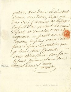 (alors ambassadeur à Constantinople) ; 3 pages in-4, adresse..« Si le directoire executif croit que mon caractere mon energie, quelques connaissances acquises dans les combats peuvent etre utiles à mon paÿs, il faut qu’il me donne une mission […] ainsi je pense que s’il veut memployer avec toi, et tu sais si je le desire, il peut me nommer Consul des Echelles du Levant à Constantinople ; alors nous travaillerions de concert à brouiller les affaires du Turc avec la Russie, nous luy ferions du canon, des soldats une administration et nous servirions bien notre patrie »… Déjà un tas de journaux français parlent du départ de Merlin, « raison de plus pour me faire desirer de partir : que je hais cette canaille »…