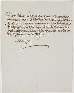 du fort de Vincennes. « Vos bontés, Madame, et votre généreuse intercession m’ont valu un grand adoucissement à mon sort ; la liberté du château de Vincennes ; l’espoir d’une nouvelle vie... C’est vous dire combien ce sera un devoir cher à mon cœur de l’employer si je puis à mériter un jour de vous des bontés encore plus grandes, et plus précieuses à mon cœur. Ô pourrai-je jamais vous rendre un mari tel que vous aviez droit de l’espérer. »