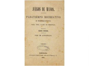 1862. (MAGIA). JUEGOS DE MANOS. PASATIEMPO RECREATIVO E INSTRUCTIVO. Barcelona: Lib. de Isidro Cerda, 1852. 8° menor. 240 p. Enc. simil piel. Sello estampillado en portada.