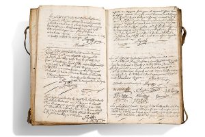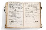 France, Savoie, Chambéry, 1732-1737 Petit in-folio, 190 ff. (texte seulement aux ff. 2 à 4, 7 à 11, 100 à 113 et 151 à 152), en français à l'encre brune sur papier. Reliure d'époque de plein parchemin rigide, lanières, dos à cinq nerfs titré «Livre du Reglement du concert de Chambery du 23e 9bre 1732» (tâches et salissures sur les plats; quelques rousseurs).