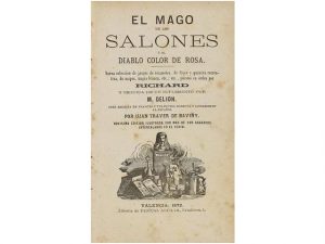 1872. (MAGIA). RICHARD; DELION: EL MAGO DE LOS SALONES O EL DIBALO COLOR DE ROSA. Trad. Ujan Traver de Baviny. Valencia: Libr. Pascual Aguilar, 1872. 8°. 376 p. Papel tostado, algun punto de óxido. Enc. en media piel, nervios.