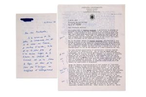 L'on joint une lettre dactylographiée en anglais de Frederik ROGERS adressée à Roland BARTHES et annotée par ce dernier. S. l., 4 mars 1972, 2 pages in-4 avec annotations au stylo bille bleu sur papier.