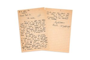 Fiesole (Italie), 22 juillet 1959, 2 pages et demie in-8 au stylo à bille sur papier.