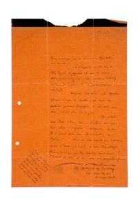 Lettre autographe signée adressée au cinéaste Jean EPSTEIN.