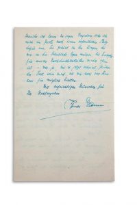 1 page et demie in-8 à l'encre bleue sur papier; en allemand.