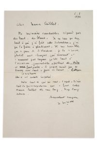 Lettre autographe signée adressée à l'écrivain, critique, Maurice Saillet.