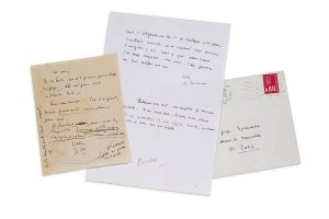 Deux lettres autographes signées adressées à Georges SPIRIDAKIS S.l., 14 mai 1976. 1 page in-12 et 1 page in-8 à l'encre sur papier, enveloppes conservées.