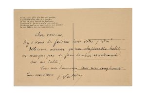 Carte postale spirituelle signée par Paul Valéry adressée à la célèbre salonnière Jeanne Muhlfeld.