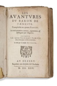 Les avantures du baron de Fæneste, comprises en quatre parties. Les trois premieres reveües, augmentees, & distinguees par chapitres. Ensemble, la quatriesme partie nouvellement mise en lumiere, le tout par le mesme autheur.