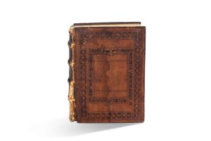 Fort volume in-4 (250 x 190 mm), (i-uiii, 594 pp. - Ffffii-IIIii-ff. bl.); (a-eiii - 414 pp. - GGg-HHhiii), en français. Plein maroquin brun estampé sur ais de bois biseautés orné sur les plats à triples encadrements ornés de décors végétaux, dos à nerfs, tranches bleues (reliure d'époque).