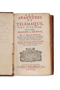 Les Avantures de Télémaque, fils d'Ulysse par feu Messire François de Salignac, de la Motte Fenelon [...] Nouvelle édition conforme au manuscrit original, et enrichi de figures. Rotterdam, chez Jean Daniel