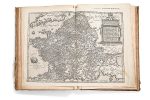 In-folio, veau, armorié au centre des plats dans un encadrement de filet estampé à froid, orné aux 4 angles extérieurs de lis et aux 4 angles intérieurs de tours d'argent maçonné de sable alternées de gonfanons de gueules, le tout dans un large encadrement de palmettes estampé à froid, dos à nerfs, caissons ornés de tours d'argent maçonné de sable et de gonfanons de gueules, tranches dorées (Reliure XVIIe siècle).