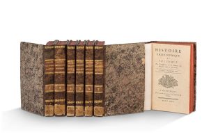7 volumes in-8, demi-basane brune marbrée, pièces beige, tranches rouges (Reliure hollandaise de la fin du XVIIIe siècle). Sabin, n°68080.