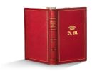 In-12, dédicace, faux-titre, titre, 327 pp., 1 ff. bl.. Plein maroquin rouge à grain long, dos titré à nerfs dorés, plat supérieur orné du chiffre «A. M.» avec couronne comtale aux encadrements à deux filets dont l'un doré, encadrement des plats intérieurs d'une frise à motif de roulette doré, tranches dorées, gardes de soie écrue, signet de soie verte conservé (reliure d'époque).