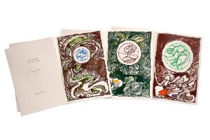 Bonnefoy (L'origine de l'écriture; La décision d'être peintre; L'Excédante) illustrés chacun d'une lithographie en couleur avec une eauforte centrale par Pierre Alechinsky.