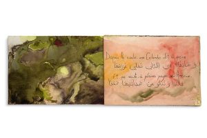 Exemplaire unique aquarellé de Linda Bougherara, artiste-peintre algérienne contemporaine, inspiré d'un poème du début du XIIe siècle andalou, écrit par l'illustre Ibn Khafadja «l'Andalou».
